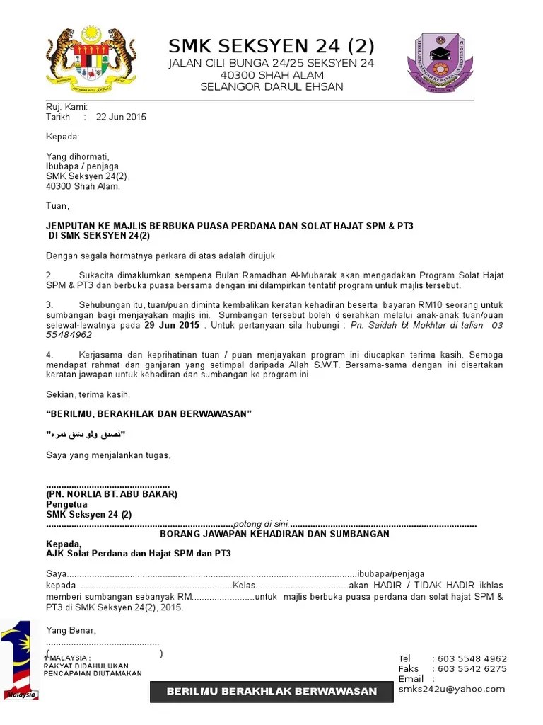 Contoh Surat Jawapan Memberi Sumbangan : 2